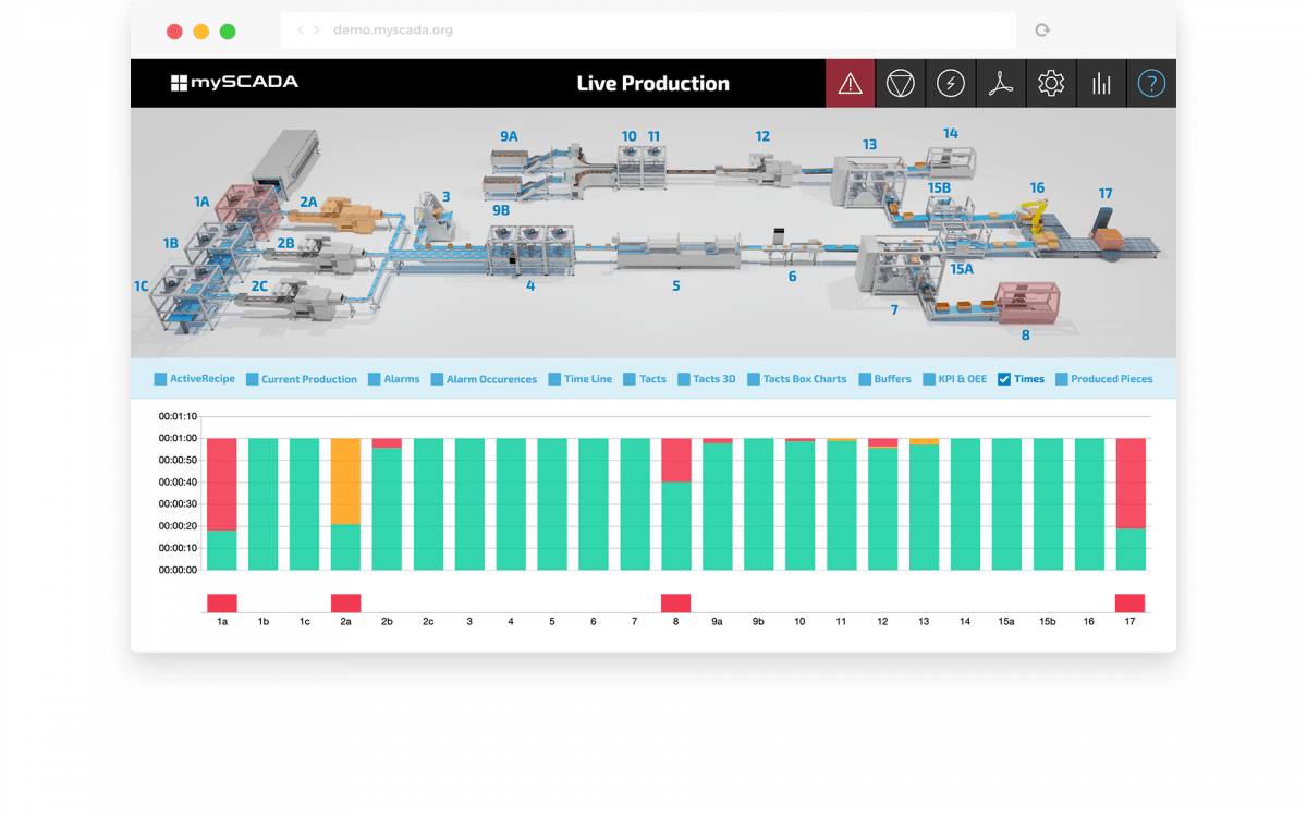 Using mySCADA PRO, you can optimize processes and consequently increase production and decrease total costs. Undoubtedly, a great advantage is the ability to detect flaws and irregularities. In these situations, mySCADA PRO proactively notifies you, bringing time and money savings.