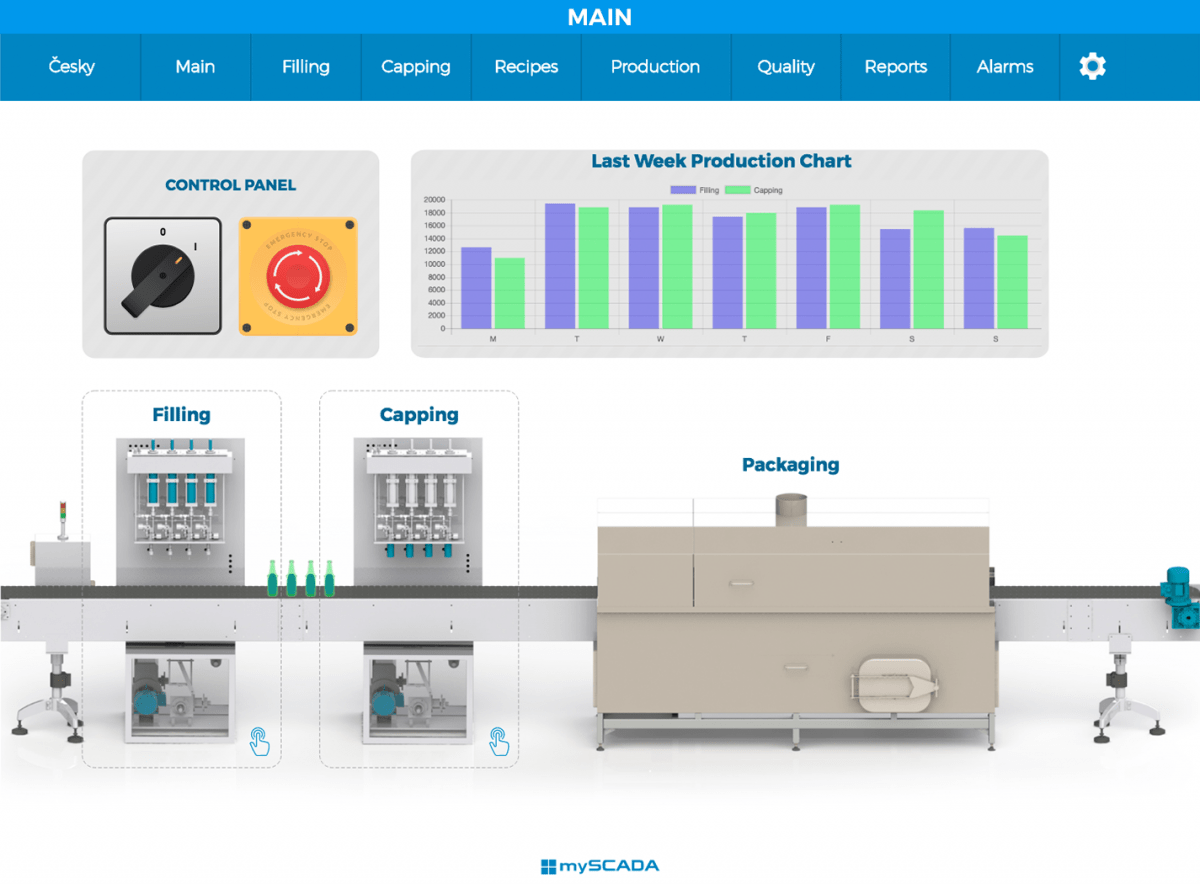 mySCADA je ryze česká firma zabývající se vizualizací průmyslových procesů. Naše SCADA/HMI řešení je univerzální pro všechna průmyslová odvětví. Moderní vizualizace od nás Vám umožní získat okamžitý přehled o výrobě, získat relevantní data a možnost jednoduché analýzy těchto dat pro okamžité zvýšení efektivity při zachování (či snížení) nákladů. Z dlouhodobého hlediska pomáhá vizualizace k optimalizaci výrobních/automatizovaných procesů.